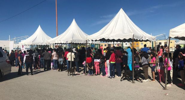 “Estábamos en este parque pero nos pidieron que nos retiráramos por obvias razones, porque lo tiene el ‘Estado’, pero no importa, ya que a través de Tránsito Municipal es que se pudo acordonar esta área que está segura para que las niñas y niños pudieran recibir un presente que manda la sociedad civil”, expresó Leticia Meneses Camino, secretaria de Bienestar Social municipal.