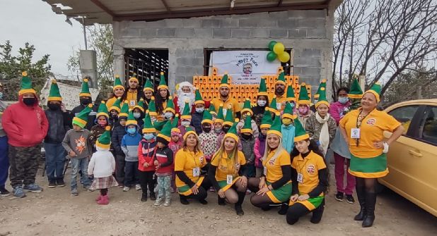 Los integrantes de la fundación se uniformaron con gorritos navideños, los cuales realizaron a mano y regalaron también a los niños, quienes además recibieron bolsitas de dulce personalizadas y una comida para celebrar una pequeña posada.