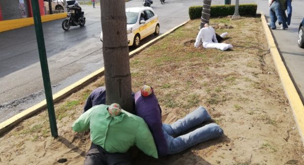 Un hecho sumamente extraño se presentó en Ciudad Madero, cuando se pudieron ver algunos cuerpos amarrados en las palmeras de la vialidad principal. Resultaron ser muñecos en venta para quemar y recibir el año nuevo.