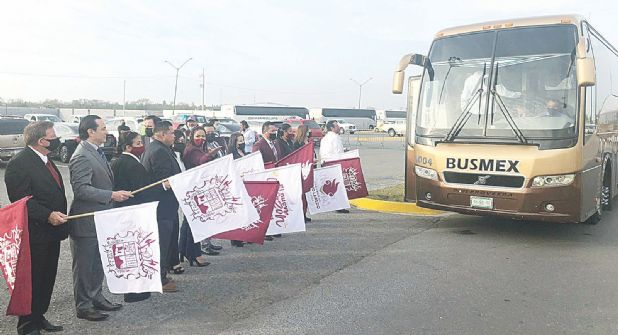 Este lunes fueron 10 autobuses, cada uno con 40 pasajeros, que cruzaron de Nuevo Laredo a Laredo, Texas; cada uno dio dos vueltas, vacunando durante el primer día más de 800 personas, algunas de ellas sin visa; cinco de las unidades de transporte pertenecen al ayuntamiento de Nuevo Laredo y el resto a Laredo, Texas.