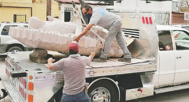 Don José Íñiguez Villalobos, oriundo de Yahualica, un pueblo mágico ubicado en el Estado de Jalisco, no es la primera vez que viene a Nuevo Laredo a aportar con su arte, pues en el año 1992 en compañía del arquitecto Florentino Medina, contribuyó con esculturas de dioses en el exterior de las oficinas de Comapa, como la madre tierra, la Diosa de la Muerte, el Dios de la Lluvia y Quetzalcóatl.