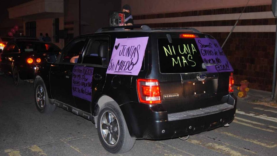 Las asistentes iban en sus autos luciendo carteles y pintas en los cristales con mensajes alusivos al 8M, mientras gritaban consignas y accionaban sus bocinas mientras que con los vehículos hacían un circuito alrededor del monumento, hasta la Calle Reynosa para regresar al mismo punto de salida.