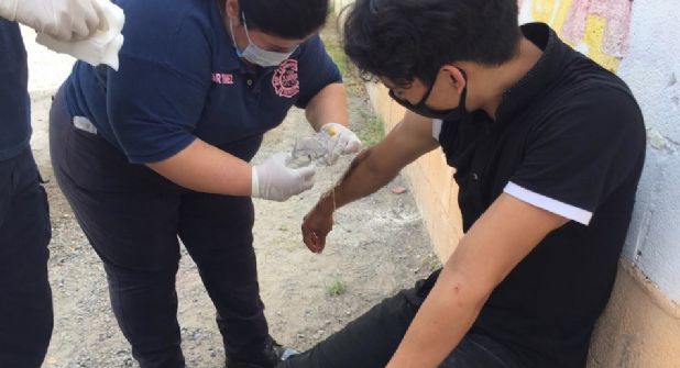 Tras el impacto, el muchacho salió volando y se arrastró por el suelo, resultando con algunos raspones en su brazo derecho, heridas que le fueron atendidas por paramédicos.