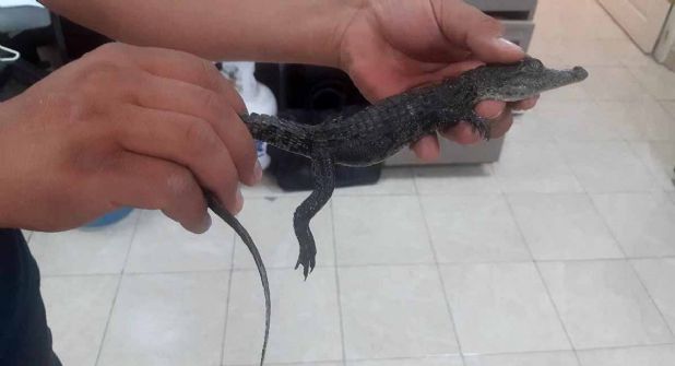 Esta mañana elementos de la Dirección de Protección Civil y Bomberos entregaron esta mañana un pequeño cocodrilo moreletti al zoológico regional.