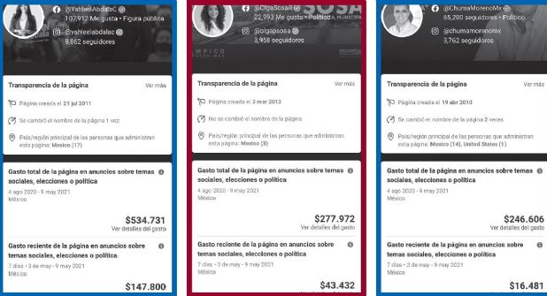 De los candidatos a las 43 alcaldías tamaulipecas, Yahleel Abdala -por el PAN- figura como quien ha gastado más en publicidad para redes sociales tanto en el último año, como en los últimos siete días, con más de 534 mil 731 pesos (del 4 de agosto del 2020 al 8 de mayo del 2021) y 147 mil 800 (del 2 al 8 de mayo), respectivamente, sólo en cuanto a publicidad pagada a Facebook.
