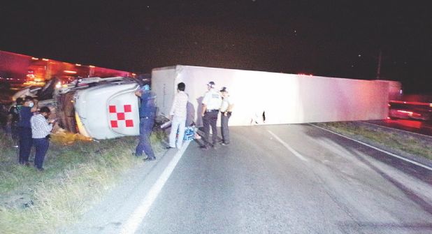 Al lugar se presentaron elementos de la Coordinación Regional de Seguridad en Carreteras e Instalaciones de la Guardia Nacional (GN), antes Policía Federal de Caminos para elaborar el parte de los hechos en los cuales resultó gravemente herido el trailero.