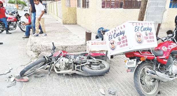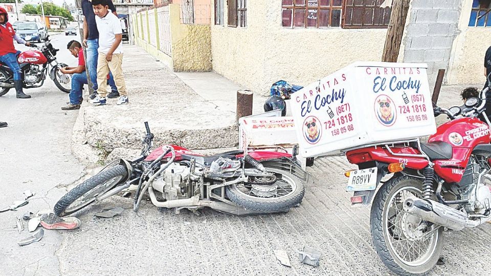 Un repartidor de “carnitas” resultó lesionado al ser chocado en su motocicleta por el conductor de una camioneta que dio vuelta sin precaución en un crucero de la colonia Mirador.