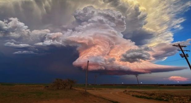 Una de estas es captada desde el oeste de Texas, una panorámica que muestra una densa concentración de nubes, lo que pronosticaba la tromba del lunes por la noche.