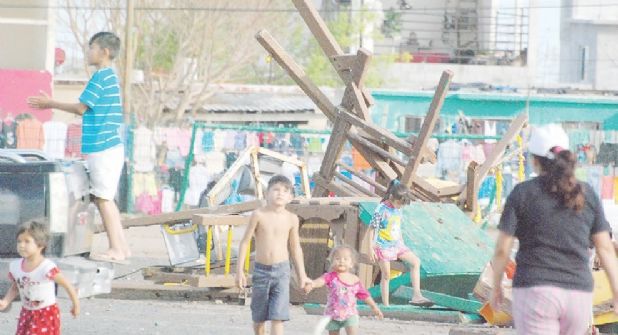 Juegos de madera destruidos, pedazos de plástico descolorido, mallas ciclónicas y postes de alumbrado caídos, fueron algunos de los resultados de la tempestad que azotó la ciudad hace una semana, que dejó a niños y jóvenes de las colonias Reservas Territoriales y Los Colorines sin áreas óptimas para sus juegos.