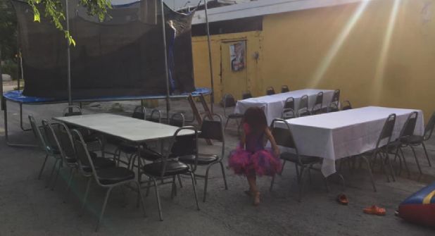 Y es que, la fiesta de cumpleaños de sus hijos, Gera de 5, y Asís, de 4 años, contaba con todo, juegos inflables, comida, incluso botellas de licor para los más grandes.
