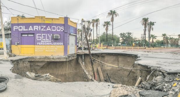 Con las lluvias del sábado se abrió un socavón que se “tragó” una camioneta y sólo se acordonó, ayer con una segunda precipitación el crucero de González y América quedará cerrado por más de un mes y ha dejado a un negocio de polarizado, prácticamente suspendido en el aire.