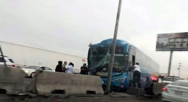 Esta mañana se registró un accidente de un autobús en Apodaca, cerca del entronque a la carretera a Laredo en el que viajaban haitianos.