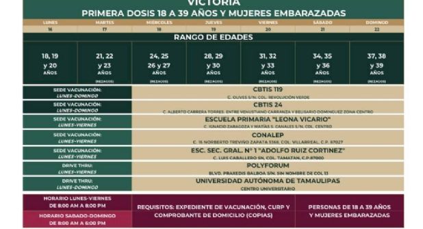 Requisitos para la vacunación de 18 a 39 años en Ciudad Victoria