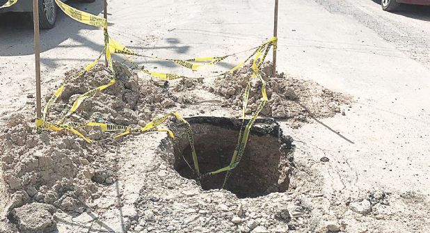 Ante la indiferencia y abandono en que la actual administración tiene a la ciudad, los vecinos le echan tierra a las zanjas y hundimientos para evitar que se hagan más grandes, pero el problema continúa y temen que suceda una desgracia.