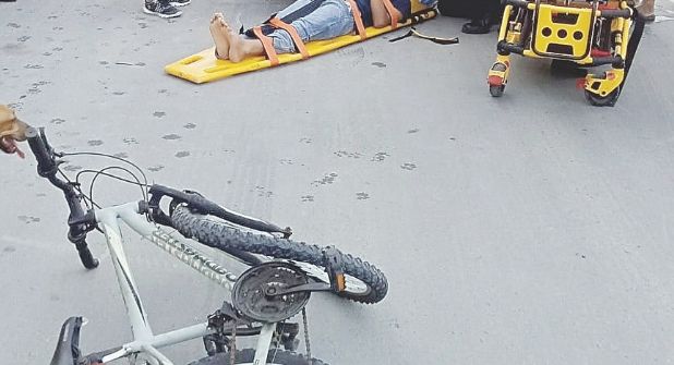 Personal de Protección Civil y Bomberos se encargó de atender al ciclista lesionado, al que se identificó como Sergio, de 14 años, radicado en el mismo sector y quien fue llevado a un hospital.