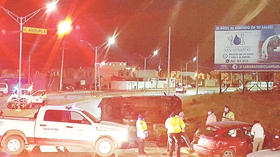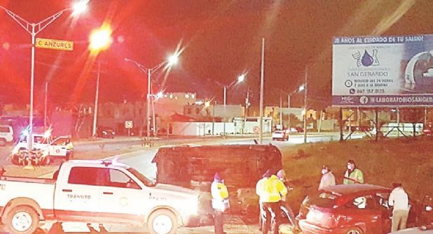 Tres personas lesionadas y daños materiales cuantiosos fue el saldo de un choque con volcadura registrado en calles de la colonia Los Ciruelos, provocado por el conductor de una camioneta de transporte de personal que no respetó la luz roja del semáforo. El accidente se registró ayer en la madrugada en el crucero de Anzures y Monterrey, y de este fue responsable José Ramón, de 21 años, quien conducía la camioneta Ford Transit modelo 2015, de transporte de personal.