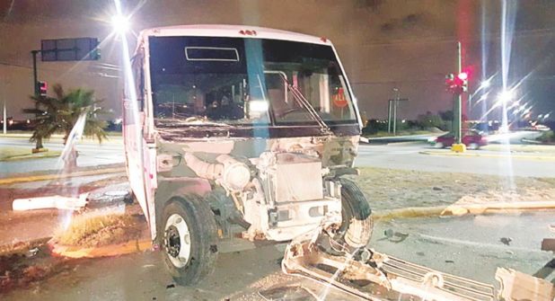En su informe oficial, el perito vial Alfonso Saldaña Alanís informó que el vehículo Urban circulaba de norte a sur por la avenida Eva Sámano y al llegar a Municipio Libre, su chofer se brincó la luz roja, fue impactado por un autobús de pasajeros y lo volcó aparatosamente. Se trata de un autobús marca Mercedes modelo 2005 que manejaba Jorge Arturo, de 33 años, con domicilio en la Sultana del Norte.