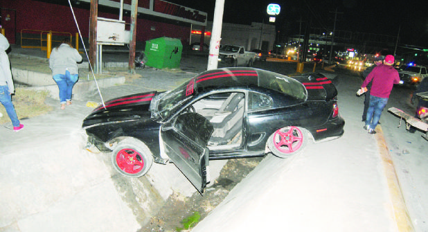 Clavado en la cuneta de la Calzada de los Héroes quedó un carro Ford Mustang cuyo conductor manejaba en forma acelerada y pasando el crucero de Eva Sámano, perdió el control del volante y se fue hacia el canal de desagüe.