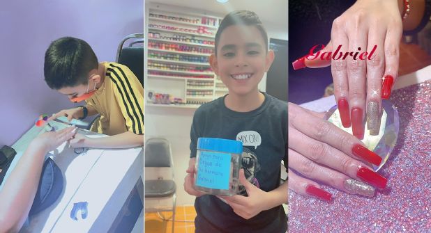 La familia de Gabriel Aarón está llena de talento, pues Blanca Guzmán, madre de los menores es quien ha enseñado al pequeño Gabriel el laborioso arte de las uñas acrílicas.