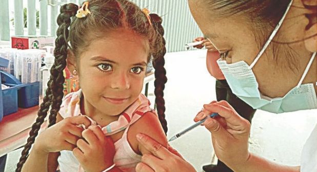 La pequeña Ángela, de 5 años, fue una de las primeras menores que llegó acompañada por su familia para protegerla contra la influenza y fue vacunada en el auto, en el módulo frente de la Secretaría de Salud que funcionará hasta diciembre para proteger contra las enfermedades invernales en esta primera etapa a las personas de alto riesgo.