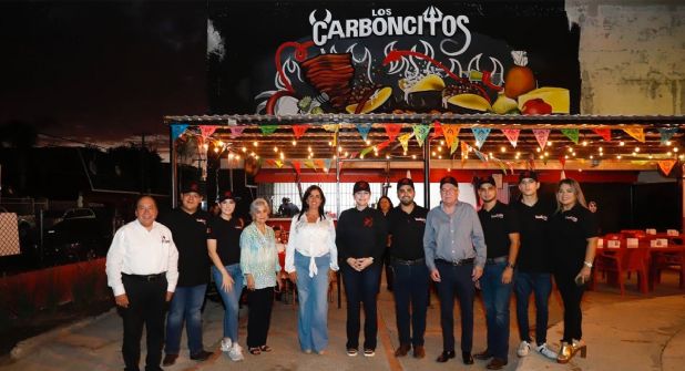 La presidenta municipal Carmen Lilia junto al secretario de Desarrollo Económico, Rolando Guevara y la regidora Macarena González estuvieron presentes en la inauguración del negocio “Los Carboncitos” que forma parte de la lista de negocios que han abierto en las últimas semanas.