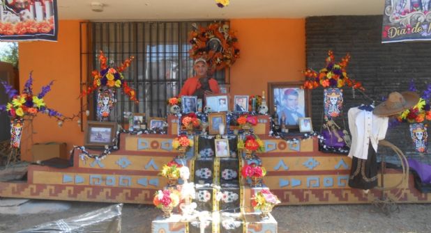 La señora Dorina y Jorge Moreno decidieron colocarlo desde principios del mes de octubre porque requiere de mucho trabajo elaborarlo para solo dejarlo dos días, así que lo van a mantener todo el mes y aun le colocaran otros elementos decorativos y propios de un tradicional altar de muertos.