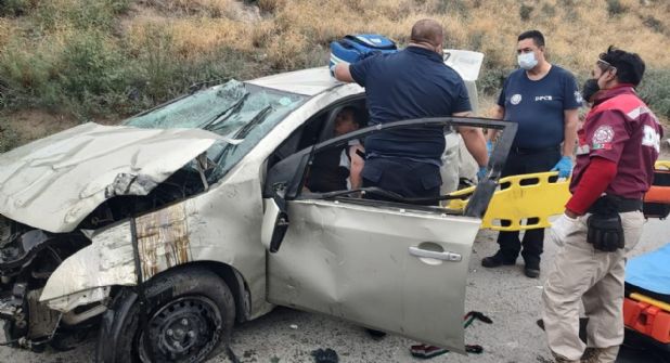 En estado inconsciente quedó un hombre que se accidentó en la Carretera Aeropuerto, su vehículo salió del carril de la carretera y volcó estrepitosamente; se informó que el vehículo dio varias volteretas y quedó en posición normal.