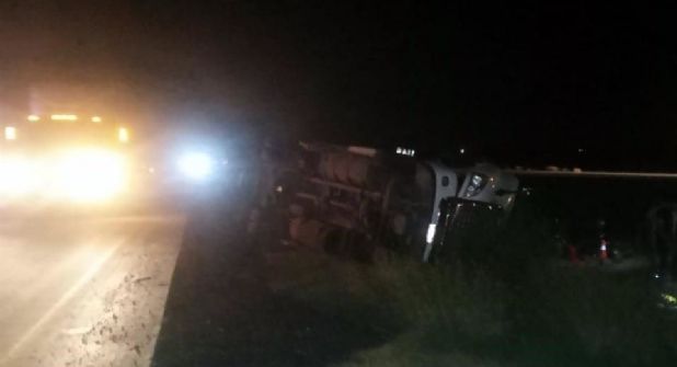 El operador de un tráiler que se volcó en la autopista Laredo-Monterrey fue enviado a un hospital de Nuevo Laredo, debido a las lesiones que presentaba.