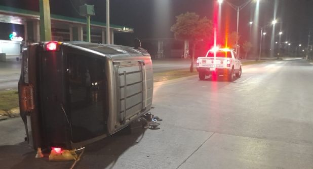 Oficiales de la Dirección de Tránsito y Vialidad informaron que el vehículo accidentado estaba volcado sobre su costado derecho.