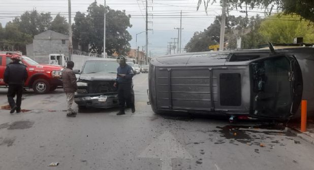 Una aparatosa volcadura se registró esta tarde en las calles de Bolívar y Niños Héroes en la cual la conductora de una camioneta Chrysler Towncountry se burló una señal de alto y fue impactada por una Chevrolet Sierra manejada por otra mujer y la volcó, pero a pesar del grave incidente, no hubo personas lesionadas, pero sí muy asustadas.