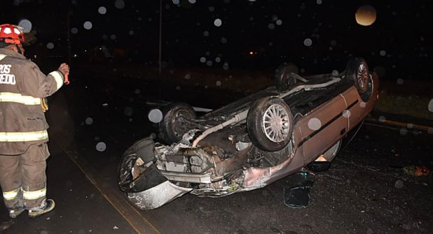 El auto quedó con las llantas del lado del chofer y así continuó su descontrolado trayecto por 30 metros más hasta quedar volcado completamente.