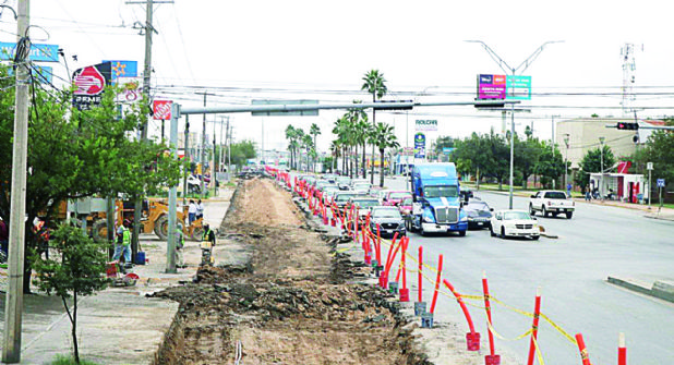 Ahí vamos a levantar todo el asfalto y recortar la banqueta que ahí se encuentra para hacer un carril continuo y mejorar el flujo automovilístico, ya que el paso de los vehículos pesados retrasa el cruce de los coches, además auxiliará a los conductores de tráileres a dar una vuelta más segura porque se extenderá el radio de giro.