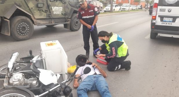 El accidente fue a las 4.00 de la tarde en el crucero de César López de Lara y Venustiano Carranza, lugar en donde quedo tirado el motociclista que sufrió un fuerte golpe en la pierna derecha.