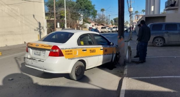 Por un presunto cerrón que le dio otro automovilista, un taxista terminó estampándose contra un poste, quedando su vehículo averiado al grado que ya no se pudo mover ya que la flecha de la llanta delantera se fracturó o quebró.
