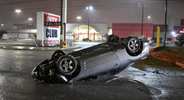 Un hombre volcó su vehículo esta noche en la calle 15 de septiembre, frente al Soriana Reforma, tras chocar contra un montículo de tierra; se desconoce el estado de salud del conductor, pues dejó abandonado su automóvil.