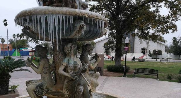 En algunas plazas públicas se pudo observar la formación de hielo en las fuentes por los escurrimientos de agua, afortunadamente no se han reportado aún tuberías reventadas como en temporadas pasadas.