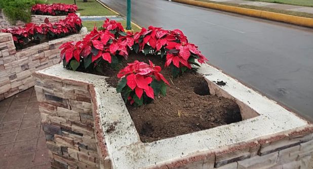 Con el objetivo de ambientar la ciudad con la temporada navideña, el gobierno municipal adornó plazas y espacios públicos con flores de nochebuena, una de las plantas características de la temporada.