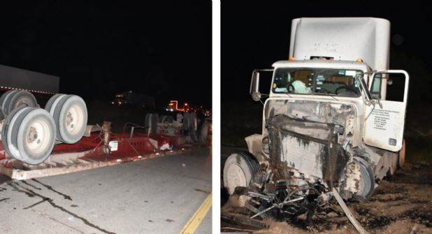 El camión circulaba de norte a sur y al intentar cambiar de carril, el segundo remolque se le ladeó y las toneladas de la carga metálica le pegaron a otro tractocamión Freightliner placas 86-EP-25, el cual se desplazaba de sur a norte y era conducido por Víctor Manuel, de 25 años.