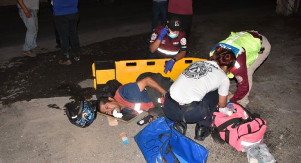 Al momento de llegar, los paramédicos de Protección civil le brindaron los primeros auxilios. Los rescatistas se percataron de que el conductor de la moto presentaba una fractura en la pierna derecha, por lo que procedieron a entablillarlo e inmovilizarlo en una camilla para ser trasladado a una institución médica.