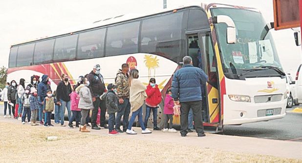 Los primeros autobuses que llevan a los infantes acompañados de un adulto, ya sea mamá o papá, parten a Laredo, Texas desde las 7:00 de la mañana.