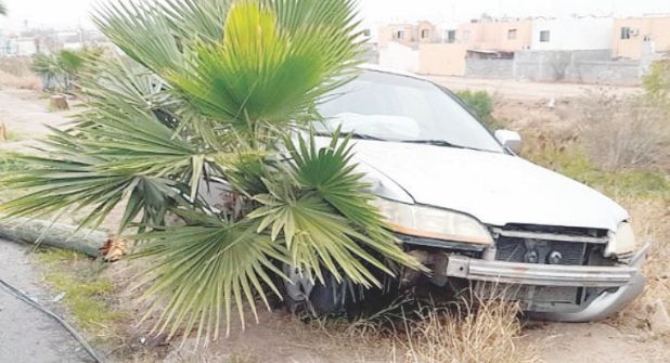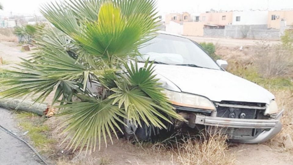 El conductor del carro se desplazaba de poniente a oriente por Paseo de la Cañada y pasando Andador 15, se descontrola y pega contra el poste de madera de Teléfonos de México y después contra una palma ubicada en la orilla del arroyo.