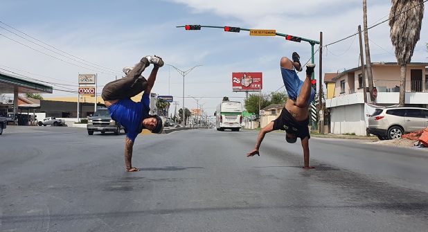 “Yo soy de Ciudad Juárez, pero tengo como tres años viviendo en Nuevo Laredo, aprendí a bailar del otro lado, en Fort Worth, Texas, empecé en la escuela practicando y cuando me regresé a México en el 2015 empecé en los semáforos”, comentó Pablo Gaitán, quien a sus 27 años mantiene a sus cuatro hijos gracias a su trabajo en los cruceros.