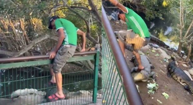 Una familia, quienes visitaban el lugar, grabó el momento en el que un joven, presuntamente bajo los efectos del alcohol o alguna droga, ingresa al perímetro designado para cocodrilos en el parque de la Laguna del Carpintero y golpea con su pie la cabeza de dos cocodrilos de la especie moreletti, habitantes naturales del cuerpo de agua de la ciudad.