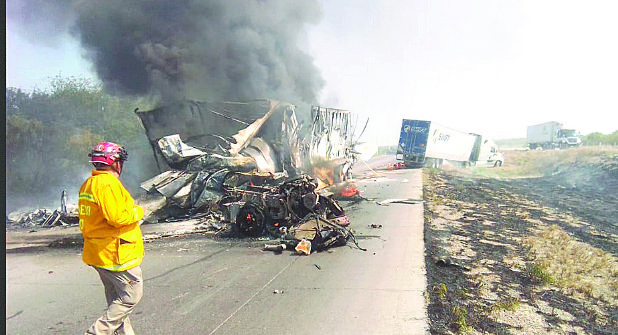 La unidad de la víctima fue completamente consumida por las llamas, que fueron sofocadas por elementos de Bomberos; sin embargo, por lo aparatoso del accidente y el rápido avance del fuego, no hubo más qué hacer por el operador que falleció en el lugar.