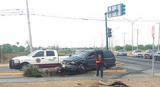 Daños materiales cuantiosos fue el saldo que dejó un accidente entre un automóvil y una camioneta, luego de que uno de los conductores trató de ganarle a la luz roja del semáforo en un crucero de la colonia Pancho Villa. El responsable del accidente fue identificado como Manuel, de 26 años, quien conducía en estado de ebriedad un automóvil Mercury Milán modelo 2010.