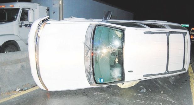 Una camioneta fue abandonada por quien la conducía después de que se volcó en ella, tras chocar contra las dovelas o muros de concreto que dividen carriles en los alrededores del Puente Transformación, al poniente de Nuevo Laredo.