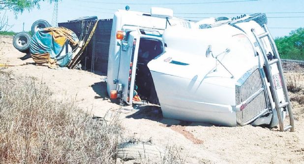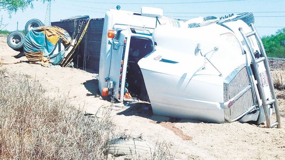 Un operador de tráiler salvó la vida de puro milagro, a pesar de que volcó en la unidad de carga que conducía mientras circulaba por la Carretera a Anáhuac, en el sector poniente de Nuevo Laredo.