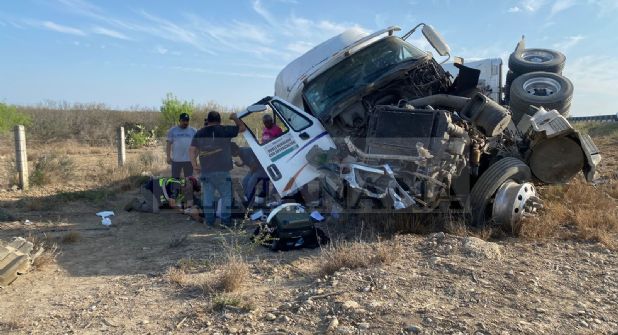 Un operador de tráiler resultó herido al volcar en la unidad de carga que conducía en la autopista de cobro de la Carretera Nacional, en dirección a Nuevo Laredo, procedente de Guadalajara.