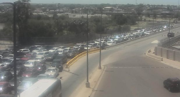 Por el contrario, el Puente Juárez- Lincoln se ve una clara actividad, mostrándose en lleno total durante la casi tarde de este jueves 26 de mayo.