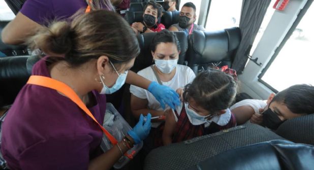 Desde la Sala Sergio Peña, los niños y niñas en este rango de edad que son albergados en la Casa Hogar del Sistema DIF, fueron trasladados a bordo de un autobús hacia Laredo, donde se les aplicó el biológico, convirtiéndose nuevamente Nuevo Laredo en un precedente a nivel nacional en el tema de la salud y pandemia.